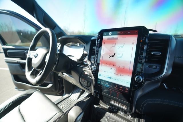 Step inside and be captivated by the unparalleled craftsmanship and advanced technology that sets this Ram apart. Indulge in the premium harman/kardon 19 Speaker Sound System, navigate with the intuitive Uconnect 5 Nav with 14.4 Display, and enjoy the convenience of Smartphone As A Key Capability. The Leather/Carbon Flat-Bottom Steering Wheel and Ventilated Front and Rear Seats elevate your driving experience to new heights.